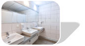 Gemeinschaftsbäder mit Duschen und Wanne, sowie eine große, sonnige